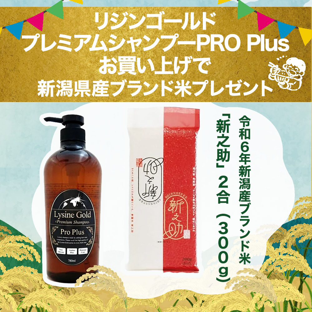 日頃の感謝を込めて春の新生活を応援!【リジンゴールド プレミアムシャンプーPRO Plus】を購入いただいたお客様にブランド米2合(300g)プレゼント!炊きたてのご飯で新生活に活力を!ぜひ、この機会にご利用くださいませ。【数量限定】なくなり次第、終了です。